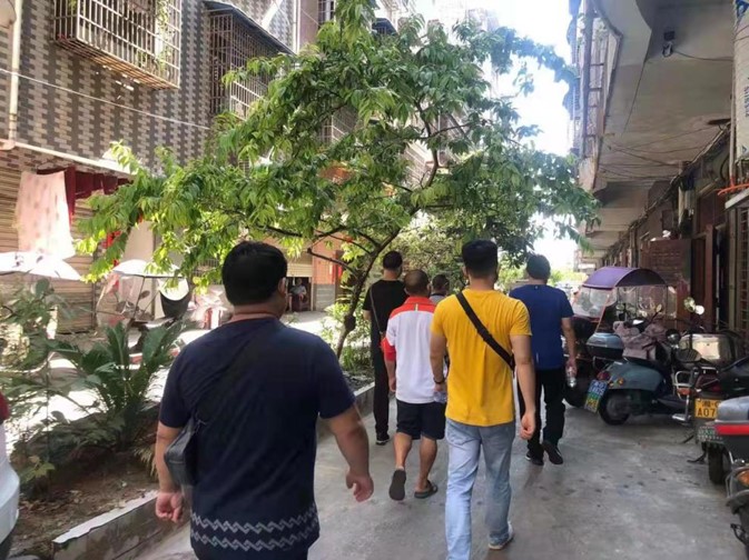 图为王钊同学与其他志愿者全面摸排小区相关信息