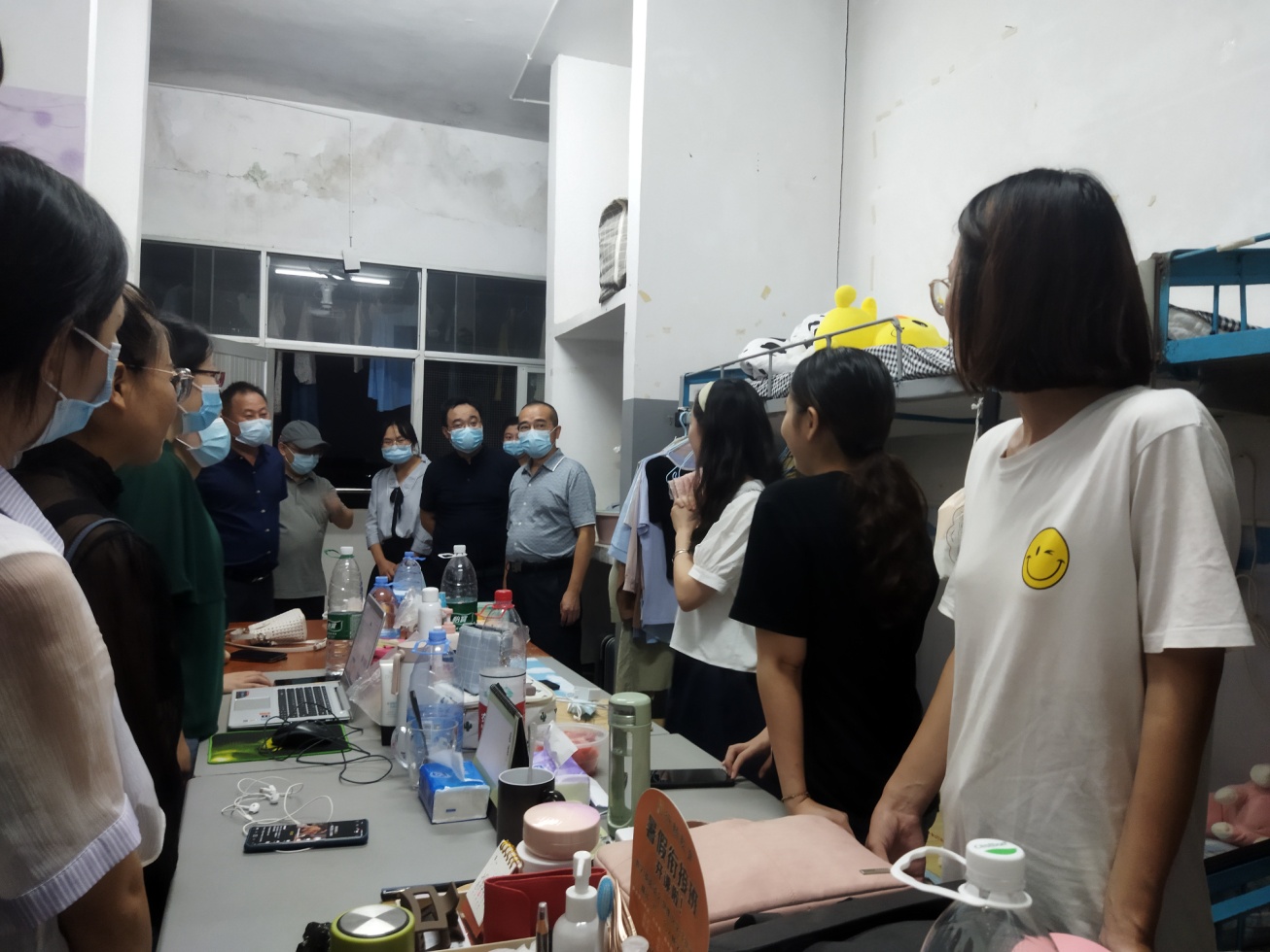 迎新期间,公司党委委员、副董事长王绯带领校区职能部门负责人一行亲赴现场检查指导迎新工作,了解新生报到情况。9月18日,王董事长一行下寝室看望公司新生,并与新生亲切交谈,让每一位员工倍感温暖。