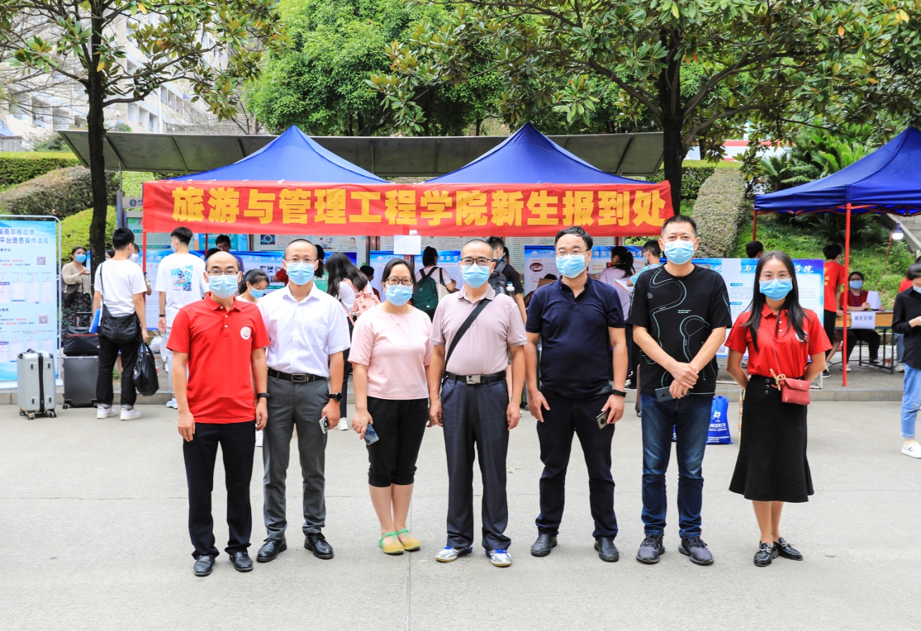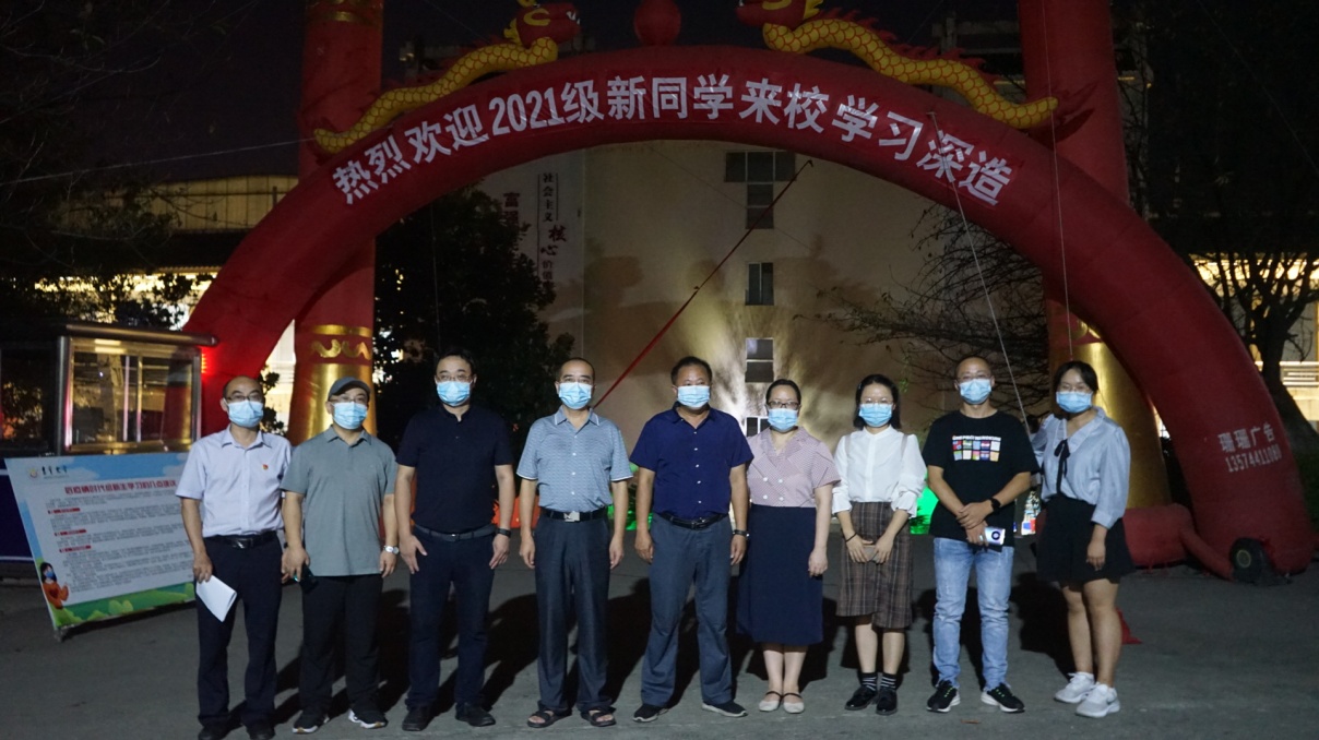 图为公司领导及工作人员在迎新报到点检查指导工作