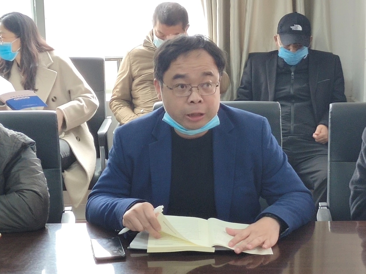 图为董坚峰副经理领学《湖南省师德师风教育读本》内容