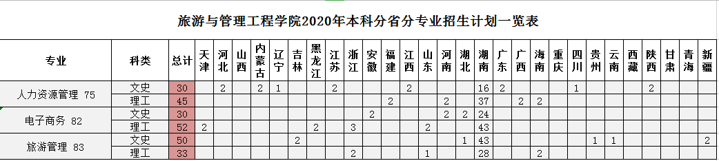 公司2020年本科分省分专业招生计划表