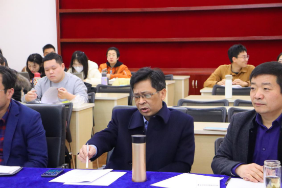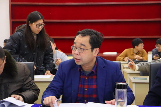 图为湖南省图书馆副馆长邹序明对同学的开题报告进行点评