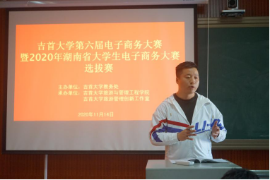 2020年11月14日上午,在张家界校区2教601室举行了本届电子商务大赛暨2020年湖南省老员工电子商务大赛选拔赛。担任本次比赛的评委嘉宾分别是:旅游与管理工程公司董坚峰副经理,张家界电子商务协会秘书长、张家界微生活电子商务公司总经理韩文彬,湖南天引电子商务有限公司总经理、阿里巴巴金牌讲师刘武,软件公司曾明星教授,商公司欧阳胜副教授,国际交流公司李永平博士,旅游与管理工程公司戴志强主任,周波博士。