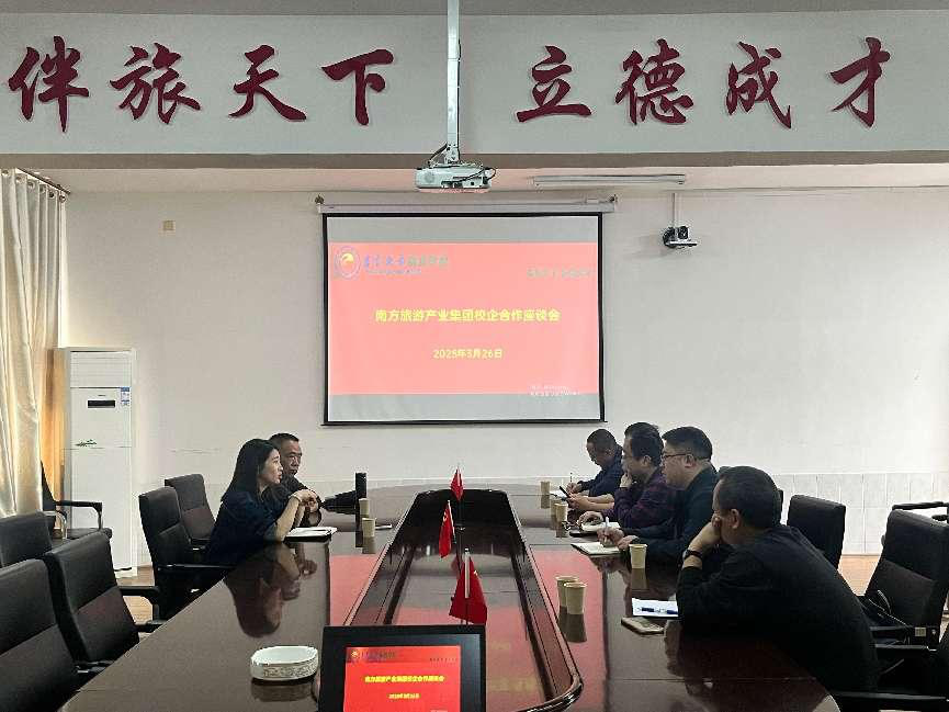 (本网讯 张吉阳)3月26日,张家界南方旅游产业集团有限公司党支部书记、行政人事部部长潘思敏和工会主席王平学到伟德bv1946官网洽谈校企合作,伟德bv1946官网副经理董坚峰、党委副书记华骏、人力资源教研室主任田开俊、电子商务教研室主任杨卫书及教学督导余勇等参加了座谈会。