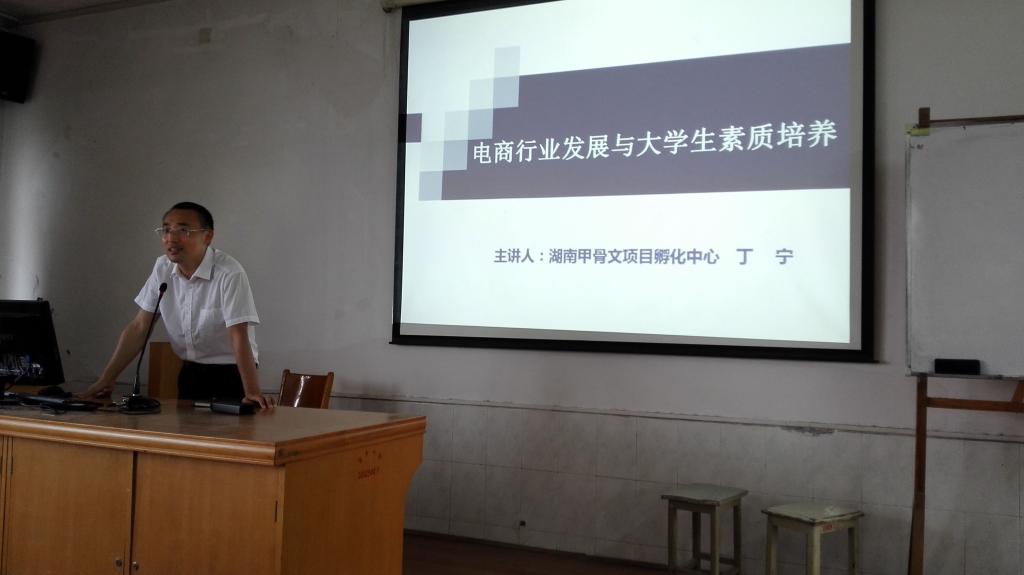 6月12日下午,甲骨文湖南项目孵化中心运营总监、湖南拓福软件科技有限公司副总经理丁宁先生作了《电商行业发展与老员工素质培养》专题讲座,电子商务系主任周波主持。丁宁先生先后在苏州软件园、长沙软件园担任智慧城市建设项目经理、电子商务运营总监等职务,系全球知名数据库厂商甲骨文在湖南的运营总监,近年来关注和扶持老员工创业项目孵化。丁总从互联网思维塑造、电商模式变革、电商服务业兴起和发展、微商与微运营等方面讲授了电子商务行业发展现状,并以自己指导和运营项目孵化中心的老员工案例讲授了老员工素养的构成和培育途径,勉励在座老员工认真学习专业知识和技能、努力提升综合素养、积极投入创新创业实践。两位老总的讲座信息量大,言辞幽默风趣,案例多样,引起了在座师生的阵阵掌声。