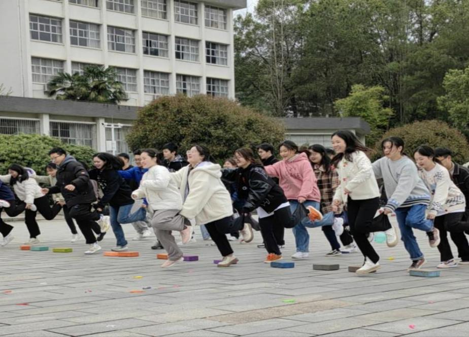 接下来有序地进行了四个游戏,分别是三人四足踩气球、齐心协力背球接力赛、链接加速和占领阵地。各组队员团结合作,齐心协力,众志成城,都尽自己最大的努力为团队争光。