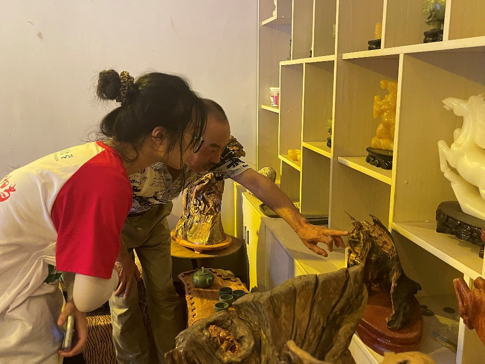 (通讯员 伍鑫 刘鑫)为全面践行习近平总书记针对青年成长成才的重要战略思考,深入学习党的二十大报告中关于加强非物质文化遗产保护力度的重要论述。7月13日,bv伟德国际1946伟德bv1946官网“心系旅农”社会实践团走进梭子丘村吉祥玉石工作坊,聆听创始人刘业祥先生的人生传奇,感受他艺术征途上的每一步坚实足迹。