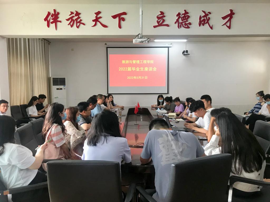 2022年5月31日,在毕业生即将离校之际,公司在2402会议室举办旅游与管理工程公司2022届毕业生座代表谈会,公司党委副书记李军,公司副经理董坚峰,经理助理蔡建刚,学工办主任刘世雄,团委书记赵潞,辅导员邝淑芳出席会议,33名毕业生代表参与会议。