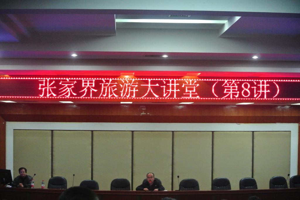 本次演讲由蔡建刚老师主持,他首先介绍了张家界旅游大讲堂,接着便是尹经理的发言了。