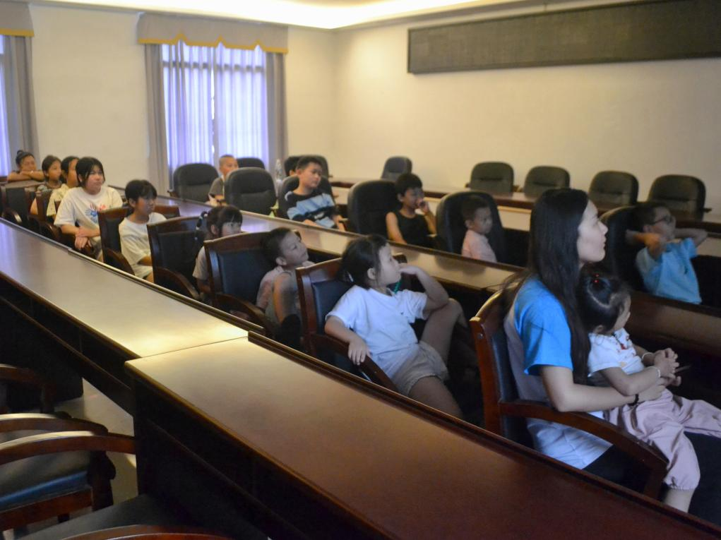 (图为志愿者带领孩子们观影)