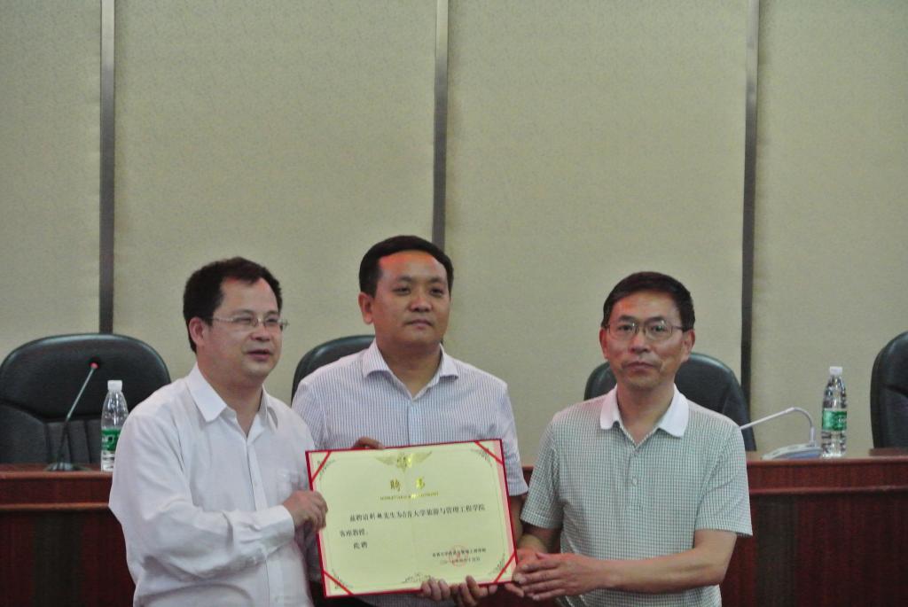 随后,公司经理尹华光诚挚地向刘超员工颁发了“bv伟德国际1946旅游与管理工程公司客座教授”聘书,并邀请他为公司题词。