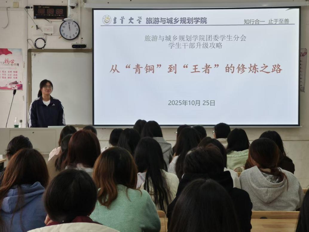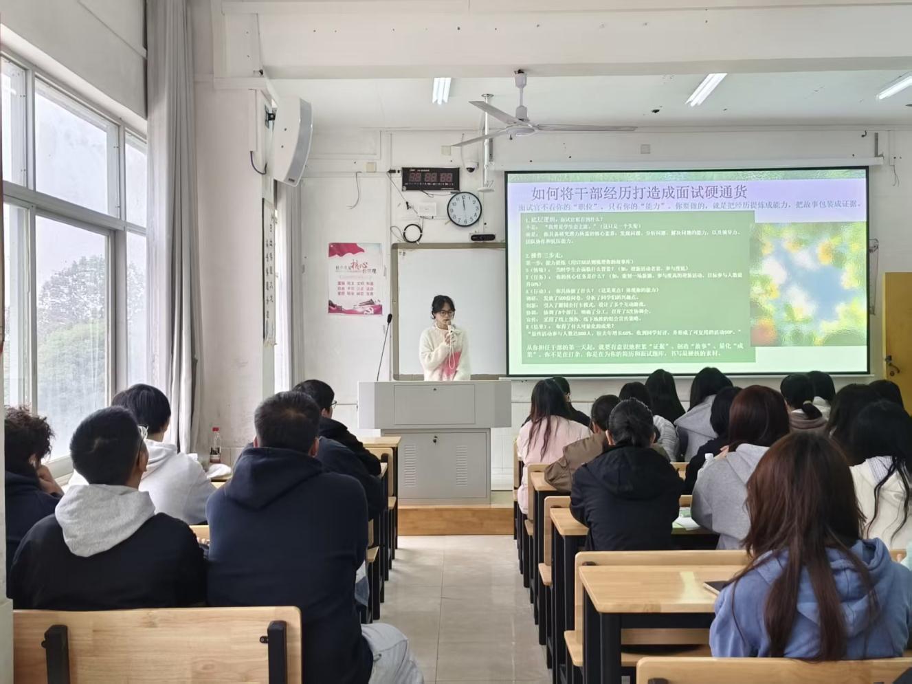 会议伊始,伍鑫同学围绕如何在繁重的员工工作中高效完成学业任务展开讲解。她强调,员工干部应树立正确的时间管理观念,掌握科学的学习方法,做到学业与工作两手抓。随后,龙瑶同学系统梳理了员工干部在不同阶段的成长路径与能力要求,分享了实用的工作技巧与经验心得,激励大家从小事做起、从细节抓起,逐步提升综合素质,成为一名优秀的员工骨干。