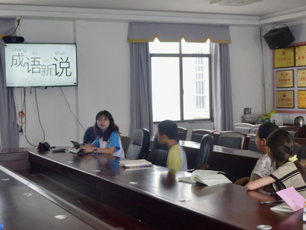 (图为志愿者为孩子们讲解成语含义)