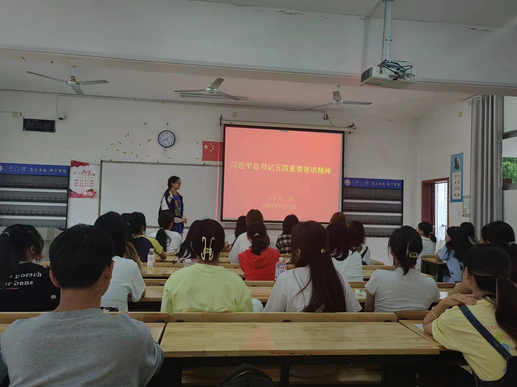 团支书组织大家学习习近平总书记对青年的寄语,引导大家深入理解其精神内涵。号召要在习近平新时代中国特色社会主义思想指引下,胸怀“国之大者”,用实际行动为推动构建人类命运共同体贡献青年智慧与力量。