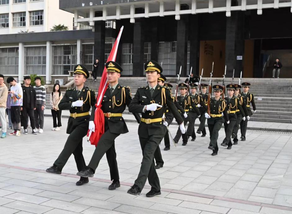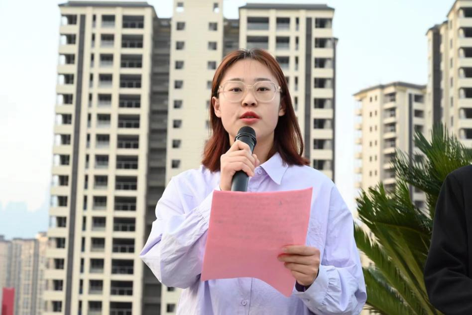 随后2021级人力资源管理专业员工李昕茹在升旗台下代表全体师生发表讲话。她呼吁青年要在生活中实现自己的大梦想,增添校园生活的缤纷色彩,同时将自己的成长成才与中国新时代的发展进步紧密联系起来。号召全体员工要练就斗争路上的“真功夫”,做本领过硬的“筑梦人”;树立“青春之我”的奋斗之姿,做追逐梦想的“追梦人”;扛起“强国有我”的青春之责,做百年复兴的“圆梦人”。