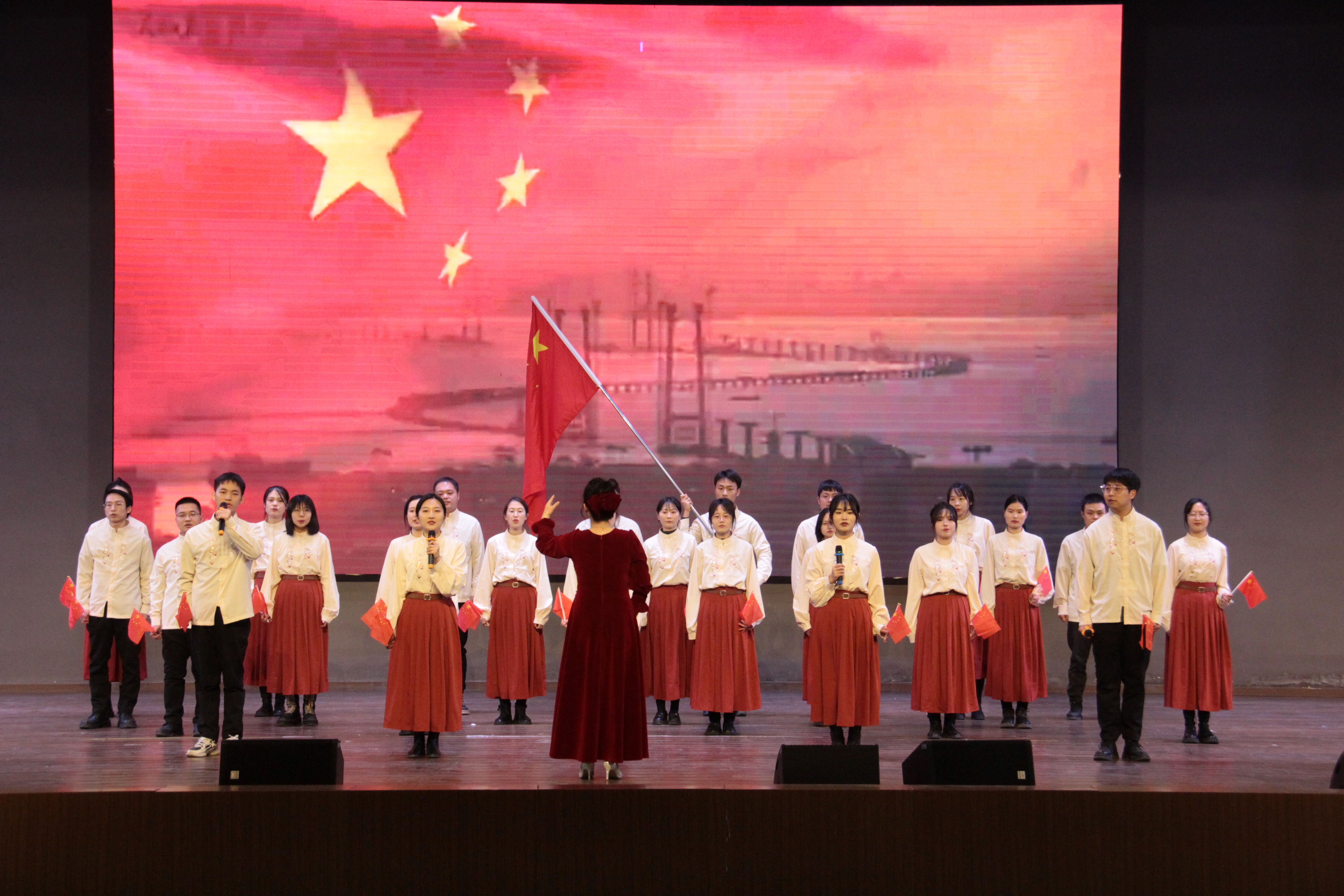 每一个篇章的节目都精彩纷呈,茶艺乐器表演《万里》情趣典雅,展现伟德bv1946官网钟灵之风致;歌唱《灯火里的中国》《歌唱祖国》《红旗飘飘》红色激昂,凸显伟德bv1946官网豪迈之气概;《职业礼仪情景剧》婉婉有仪,呈现伟德bv1946官网温恭之礼仪,而伴随着《有那么一个地方》民族舞表演的结束,本次的元旦晚会也进入了尾声。晚会最后,各领导、老师、表演人员合影留念,为本次元旦晚会画上完美句号。