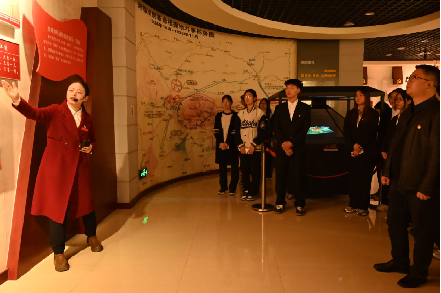 (本网讯 张吉阳)为缅怀革命先烈,传承红色基因,推动党建与专业实践有机融合,3月21日,bv伟德国际1946伟德bv1946官网组织员工党员、入党积极分子共50余人,前往湘鄂川黔革命根据地纪念馆开展“一月一课一片一实践”活动,公司党委副书记华骏、学工办主任刘世雄、辅导员刘雅菲老师带队参加。