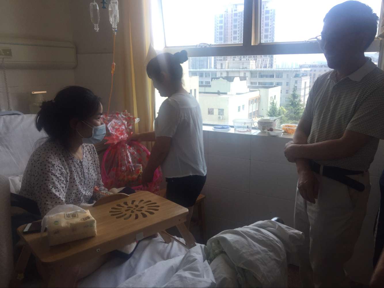5月27日,公司派老师和同学代表前往医院对杨慧同学表示了慰问,他们分别是符铁军书记,辅导员代表刘世雄老师,团总支员工会代表何海洋同学,杨慧本班同学代表赖蕊同学。