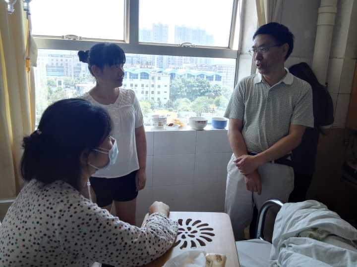 首先,代表们给杨慧同学献上果篮。紧接着,符书记和刘老师亲切的问候杨慧家人及杨慧,并鼓励和安慰杨慧。人在旅途,难免会遇到荆棘和坎坷,但风雨过后,一定会有美丽的彩虹。谁都难免遭遇病魔的侵袭,他有时会把你折磨的筋疲力尽,但我们始终要有这样的信心:我们的意志比他更强大,他在我们面前不值一提,家人的关怀,朋友的关心,自己的努力,很快你就能战胜病魔,赢得胜利。而杨慧对自己的病情很乐观,并对公司表示特别感谢。然后符书记和刘老师询问杨慧同学病情的情况,了解了她的病情。最后刘老师把爱心捐款献给杨慧的家人并与他们讨论了捐款的详情。