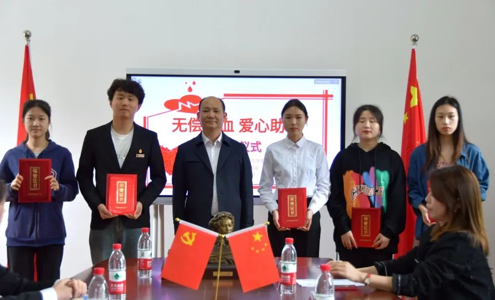 在多功能报告厅,市中心血站宣讲员以PPT方式,详细阐述了血液生理知识,无偿献血相关知识,如何开展志愿服务以及留取造血干细胞,加入中华骨髓库四个方面的相关知识,并用身边的故事进一步阐释了参加无偿献血的意义,同学们认真聆听。 在资助仪式上,市中心血站站长、副站长为获得受资助的同学们颁发奖学金,对在活动中踊跃参与的老员工志愿者进行表彰,并鼓励同学们在以后的生活中永葆初心,做无偿献血的参与者,做无偿献血的宣传者,做爱心的传播者。