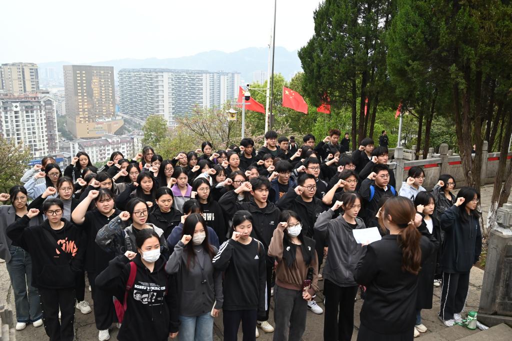 “我志愿加入中国共产主义青年团,坚决拥护中国共产党的主张,忠实执行团的决议,严格遵守团的纪律......”全体人员伫立在烈士纪念碑前,重温入团誓词,誓言掷地有声,响彻云霄,体现了向英烈学习的决心和信念。