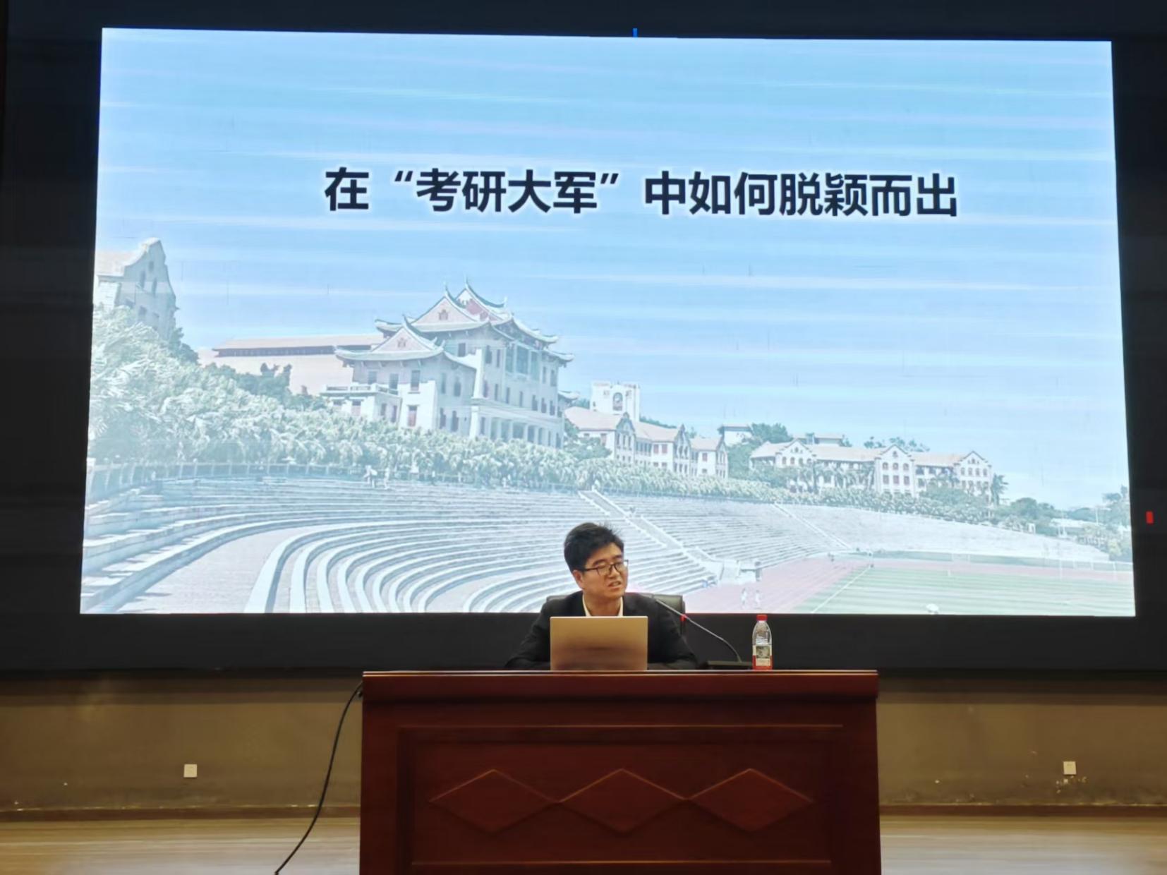 尚道文书记以“锐意进取,不懈奋斗”为主题,结合当前国家发展形势与高等教育变革,强调了新时代老员工肩负的责任与使命。并通过列举公司优秀员工的成长历程,激励同学们树立远大目标。姚云贵博士以“考研形势分析与备考策略”为题,为员工们带来一场深入浅出的考研指导讲座,鼓励员工“在奋斗的年纪拒绝安逸,以青春之我奉献国家”。