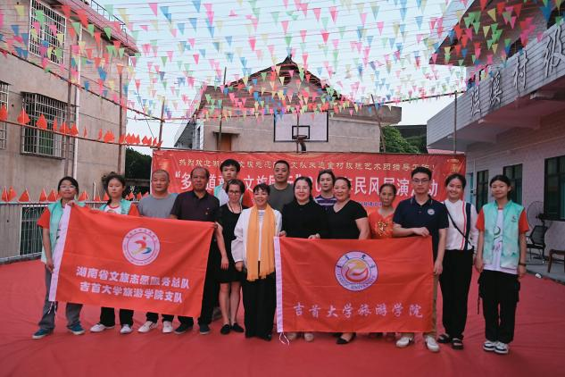 在涟源市,志愿服务者协助村民编排舞蹈,积极参与活动筹备服务,联合举办“多彩道童,文旅同行”2024年民风展演活动,丰富了乡村文化生活,推动文旅融合发展;深入生态农业示范基地,参与体验基地日常工作,实地考察当地农业现状与前景;在田间地头,化身“田园使者”,亲眼见证现代农业科技运用;与村民深入交流,打开了解乡村文化和农旅融合发展新模式的窗口;开展“再走毛主席研学路,重温红色革命文化”志愿活动,追寻伟人足迹,赓续红色血脉,了解毛泽东同志青年时期游学经历,感悟红色文化与乡村旅游的紧密联系,探讨文化旅游发展与历史遗址保护之间的平衡。