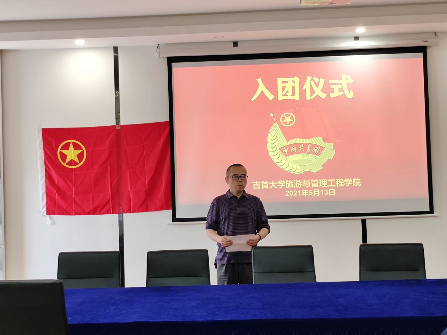 恰逢中国共产党建党100周年,为建设公司共青团队伍,壮大团的力量,公司于5月13日中午12时在2501开展2020-2021学年新团员入团仪式。仪式由胡娅男同学主持,公司党委副书记李军、团总支书记刘世雄、2019级辅导员邝淑芳老师、2020级辅导员赵潞老师,以及部分老团员和全体新团员参加。