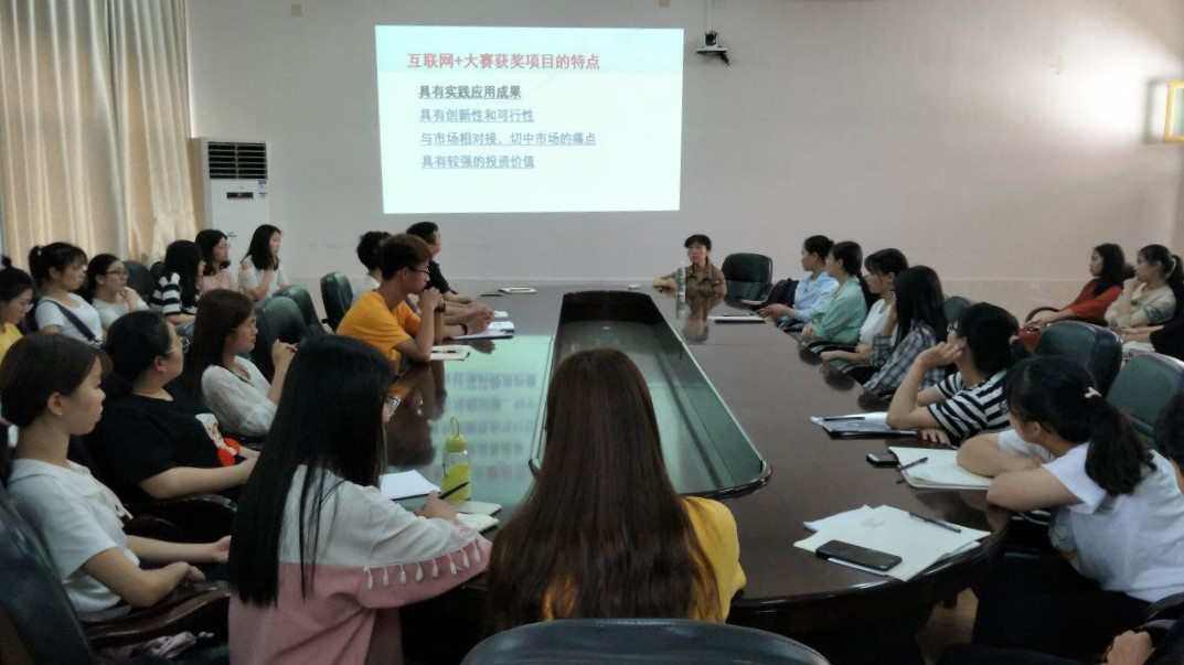 讲座开始,由吴书记给同学们介绍了徐晓慧老师,徐老师曾三次担任“互联网+”创新创业大赛的的指导老师,带领团队参加省赛、国赛,并获得奖项。其在“互联网+”大赛方面有着深刻的了解,为本次参赛选手提供很好的帮助及赛前准备。