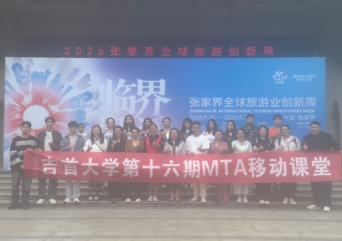 2025年9月26日,公司第十六期MTA移动课堂在张家界碧桂园凤凰酒店顺利开展。在粟娟副经理的带领下,2025级旅游管理专业(MTA)17名研究生及公司5名教师参加了全球旅游业创新周平行论坛——“国际旅游目的地的研学新机遇”。此次活动为同学们搭建了了解行业前沿、深化实践学习的重要平台。