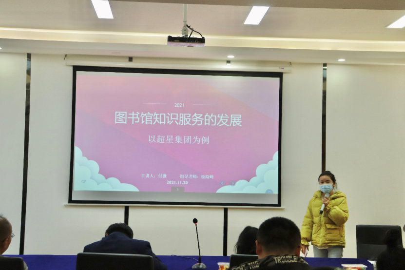 首先,张心悦同学针对自己的毕业论文《土家族传统医药口述史的搜集》分享自己的课题研究经历,该如何研究搜集所需资料,讲述自己亲身体验过的传统医学方法。吴昊同学以《政府惠农信息乡村传播效能形态构建及生成机理》为题分享相关的研究经验,石延雪同学对《新时代武陵山民族地区图书馆阅读推广创新模式研究》做相关汇报,马程昕同学基于《5G时代图书馆的变革发展》提出自己的观点,常海燕同学就《大湘西片区县域公共图书馆总分馆制服务效能建设与评估研究》分享自己的研究经历,周静同学以长沙市图书馆为例分享《分馆服务效能及提升》的报告,付薇同学以超星集团为例讲述《图书馆知识服务的发展》。