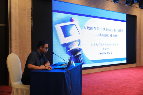 在专题学术报告阶段,董坚峰副经理应邀做了题为“大数据背景下的舆情分析与预警——以旅游行业为例”的报告。董坚峰博士基于旅游大数据的背景,从旅游危机事件中的网络舆情、大数据背景下的舆情分析预警需求、旅游危机事件中的网络舆情分析方法以及大数据背景下的网络舆情预警四个方面分享了利用情报分析方法开展旅游舆情分析预警的学术经验,受到在座专家的关注和肯定。