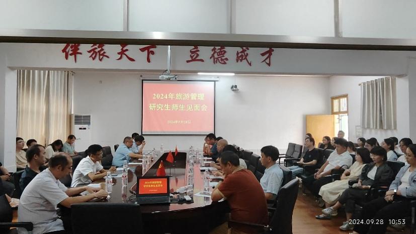 会上,伟德bv1946官网经理鲁明勇、副经理董坚峰代表公司分别向旅游管理与图书情报24级全体新生致欢迎词,对出席会议的各位导师进行了简单介绍。随后,会议详细介绍了公司硕士点的发展建设情况,展示了在学科领域的深厚积淀和卓越成就,为24级新生们描绘了一幅充满机遇与挑战的学术蓝图。在师生双选环节,各位导师详细阐述了自己的研究方向及培养方案,鼓励新生们根据自身兴趣与专长,积极选择适合的导师,共同开启学术探索之旅。同学们也借此机会进行了自我介绍,展现了朝气蓬勃、积极向上的精神风貌。
